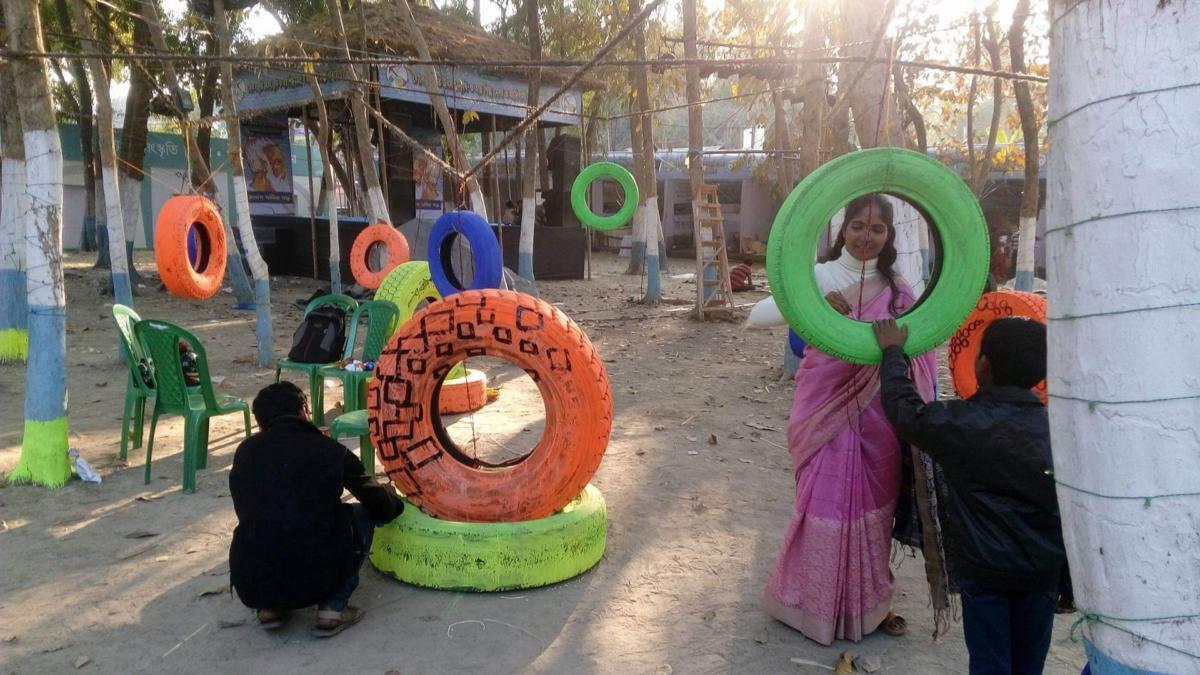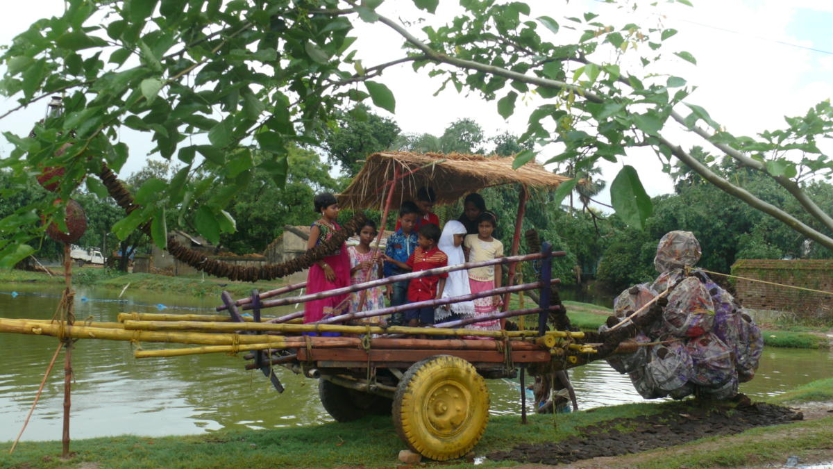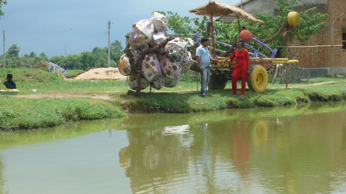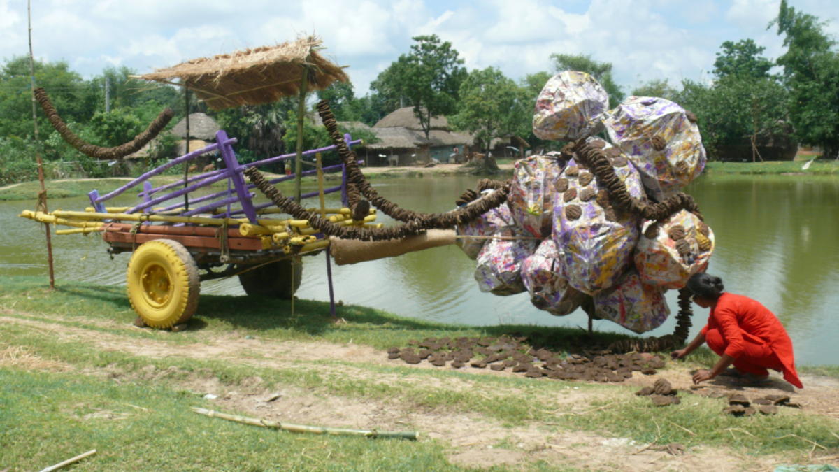 Our works are quite objectives. While we work, we choose various subjects in tune with nature. The theme of our work is usually picked from the daily lifestyle of an village which is surrounded by dance-drama in a single frame to beautify it. The materials used are locally available in the villages that are natural and bio-degradable. The whole procedure is counted as a performing art and during the performance, the villagers also get involved that make the whole work come alive. At times a wall or vast area is selected for displaying our installation. This alternative work can be considered that it signifies the lifestyle of any or random places, and includes in general people of that area and make the entire aspect come alive.